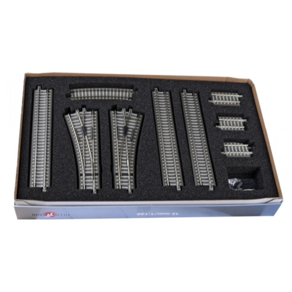 Set extensie sine cu terasament scara TT / 1:120 / ecartament 12 mm produs de Tillig. Setul poate extinde orice set de start ( cod 01448, 01500, 01501 ce se gasesc pe site-ul nostru precum si alte modele de start set cu sine cu terament ).
