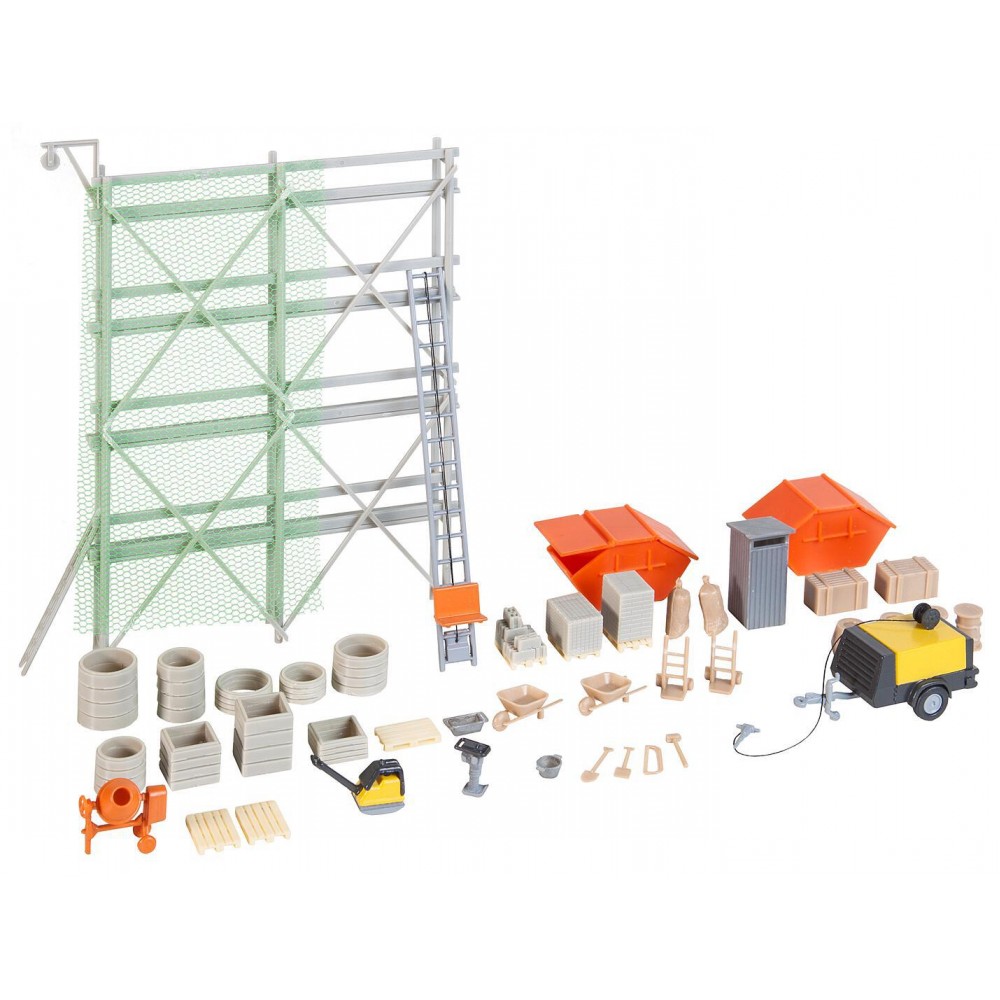 Set accesorii santier, kit de montaj, necesita adeziv ( recomandam Faller 170490 ). Setul contine 227 piese in 10 culori, ep.IV, scara H0.