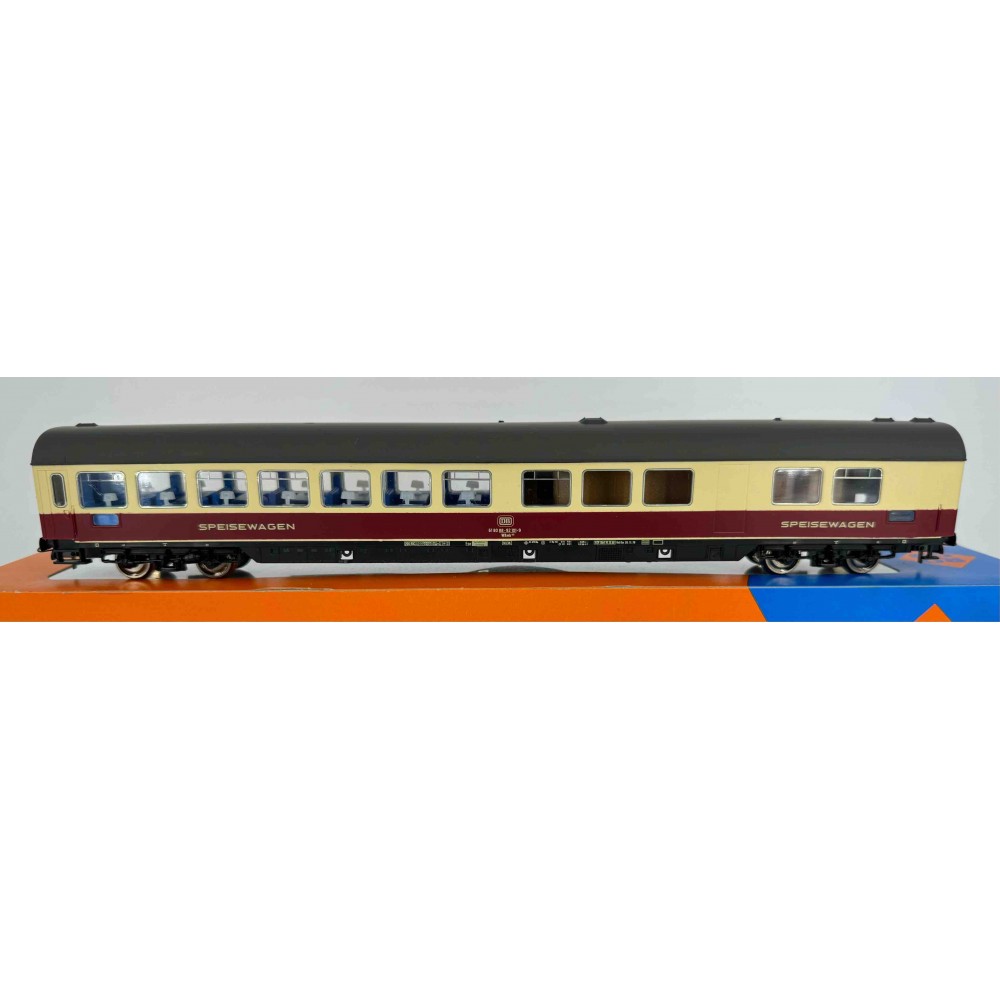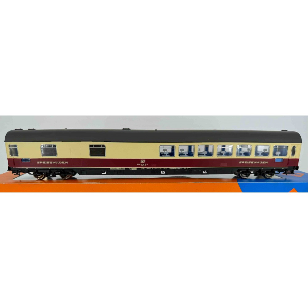 Vagon restaurant in culori TEE, inmatriculare DB, ep.III, 275 mm lungime, scara 1:100 / ecartament 16,5 mm, osii izolate pe o parte, cuple standard montate.