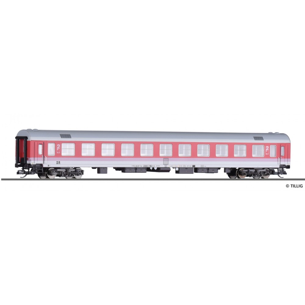 Vagon de calatori de clasa 2 , de tip Halberstadt Bomz, cuple NEM 358 cu cinematica KK, lungime 220 mm, DR, ep.V, scara TT / 1:120 / 12 mm ecartament.