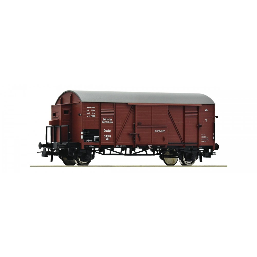 Vagon acoperit pe 2 osii de tip Glhs „Oppeln“ ep.II. DRG , 124 mm lungime, culise si cuple standard montate, osii izolate pe o parte, scara H0 / 1:87.
