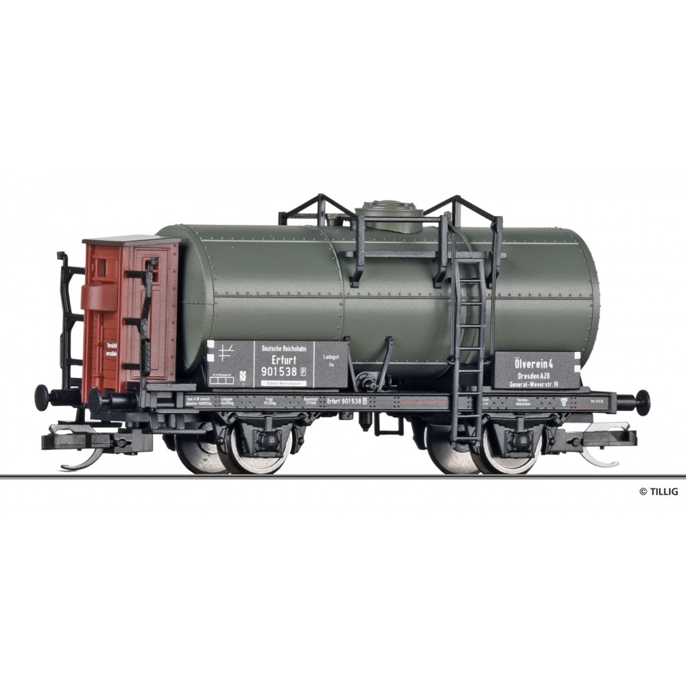 Cisterna pe 2 osii "Olverein 4 Dresden" DRG, ep.II, 74 mm lungime, scara TT / 1:120 / 12 mm ecartament, cuple scurte Tillig montate ( NEM358 ).