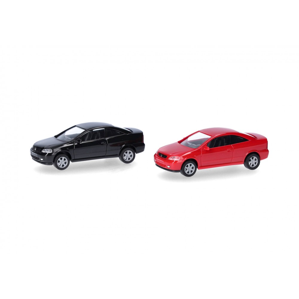 Set 2 buc. Opel Coupe - H0 Herpa 014106, kit de montaj, culorile sunt negru si rosu magma.