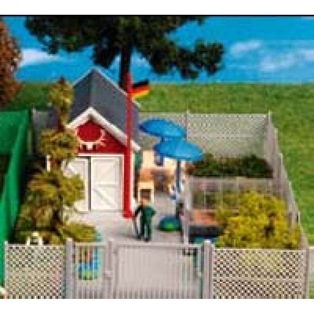 cladire tip casa de vacanta; Gradina + accesorii .Dimensiuni montata : 20 x 12 x 5 cm, scara H0.